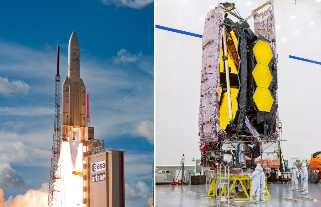 현재 발사 날짜는 2021년 12월 25일(12/24 기준)이며, 우리나라 시간으로는 오후 9시 20분으로 예정되어 있어요. 발사 장소는 남아메리카에 있는 프랑스령 기아나의 쿠루라는 도시입니다. 이곳에 프랑스와 유럽 우주국(ESA)가 운영하는 기아나 우주센터가 있습니다. JWST는 아리안 5호 로켓에 실려 발사될 예정이에요. 참고로 아리안 5호 로켓은 세상에서 가장 믿을만한 로켓이라는 별명을 가지고 있습니다.
