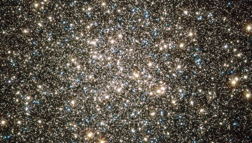 쌍안경으로 보면 구상성단 주변부에 모래 알갱이 같은 수많은 별을 확인할 수 있고, 망원경으로 보면 중심부에 모여있는 별들까지 확인할 수 있습니다. 허블우주망원경이라면 위의 사진처럼 화려하게 볼 수 있답니다.