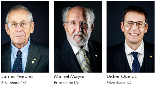 2019년 제임스 피블스, 미셸 마요르, 디디에 쿠엘로