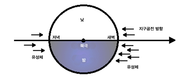 4) 시간 여유가 있다면 새벽 1시부터 관측하기(모든 유성 및 유성우는 새벽 1시부터 날이 밝기 전까지 가장 잘 보인답니다. 저녁 하늘의 유성체들은 지구 공전 속도보다 빨리 지구를 쫓아와야 유성으로 떨어지지만, 새벽녘에는 지구가 지나가는 공간에 머물러있기만 해도 지구와 충돌하여 유성이 되기 때문이에요)